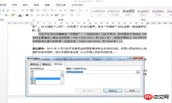 document.LoadFromFile(@"C:UsersAdministratorDesktop中国梦.docx "); //Insert Bookmark