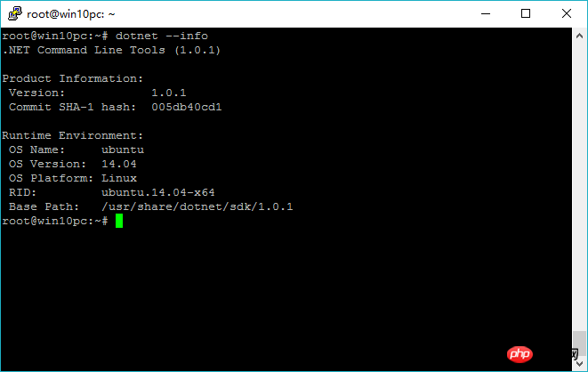 登录后复制安装完成后执行 dotnet --info 如下: