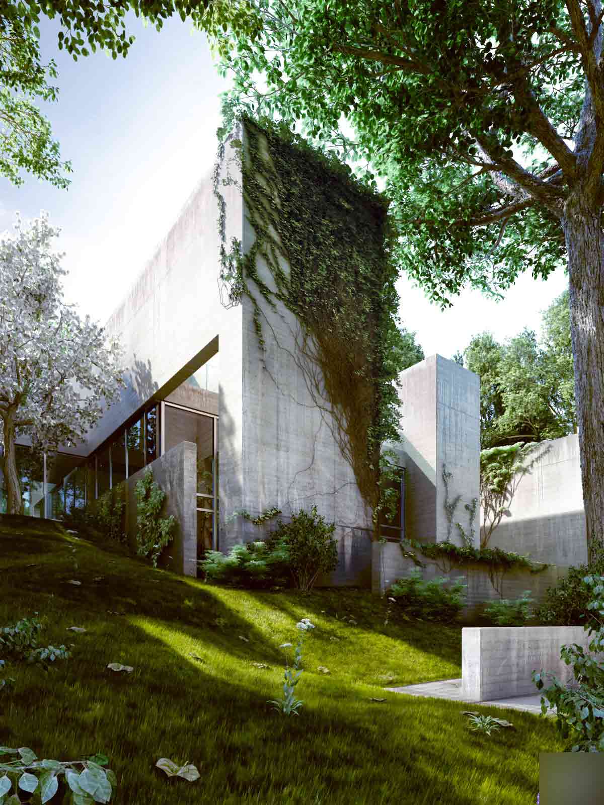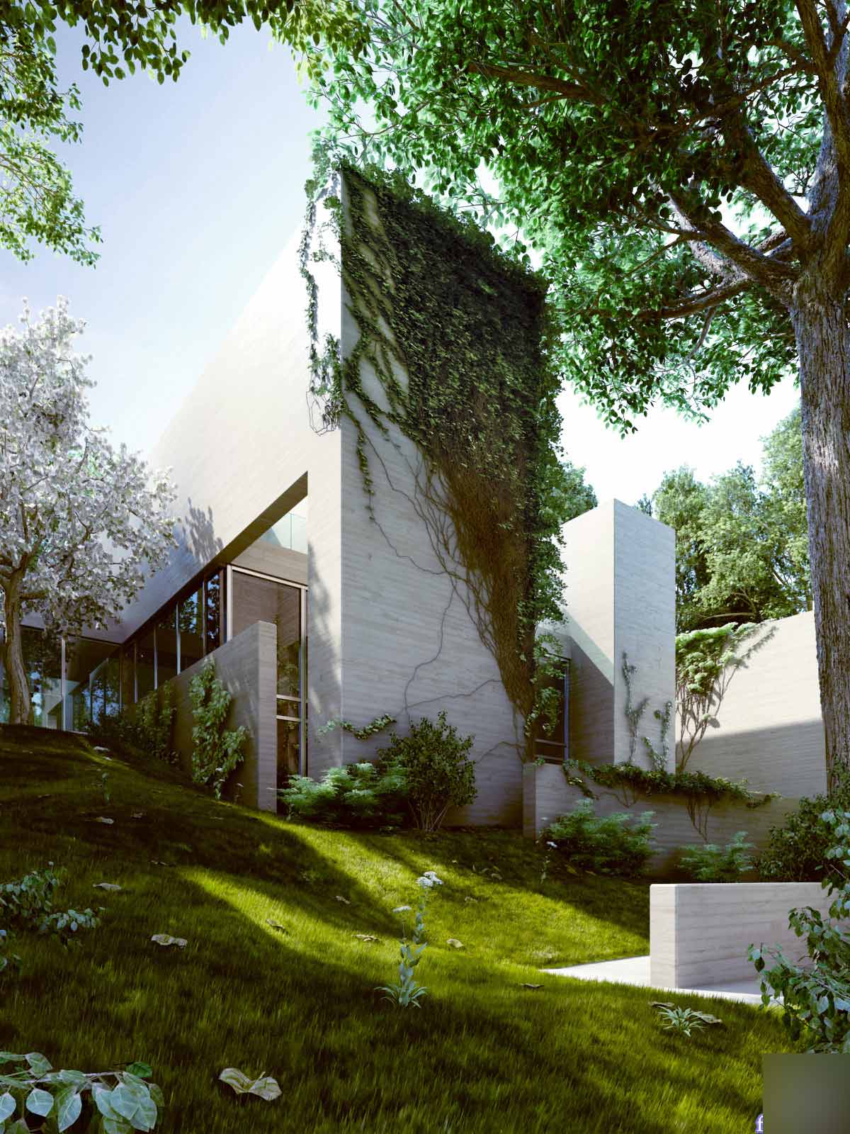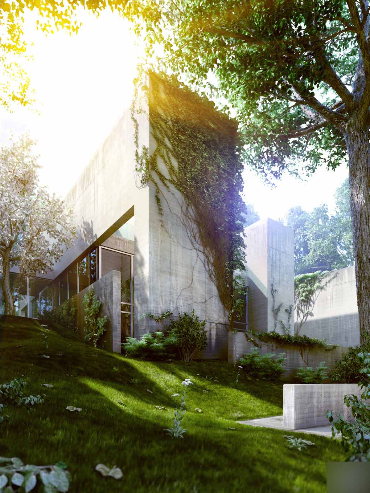 我叫viktor fretyan是一个在匈牙利从事建筑表现的艺术者,最近有机会做些关于satoshi okada建筑作品的渲染,尽管表现的结果并不完美(我花2周出了9张图)。过了交图期,我决定继续把这个项目完善,因为它对我很有吸引力,这个私人的工作大约花了我3个月,但最后的结果很让我满意。