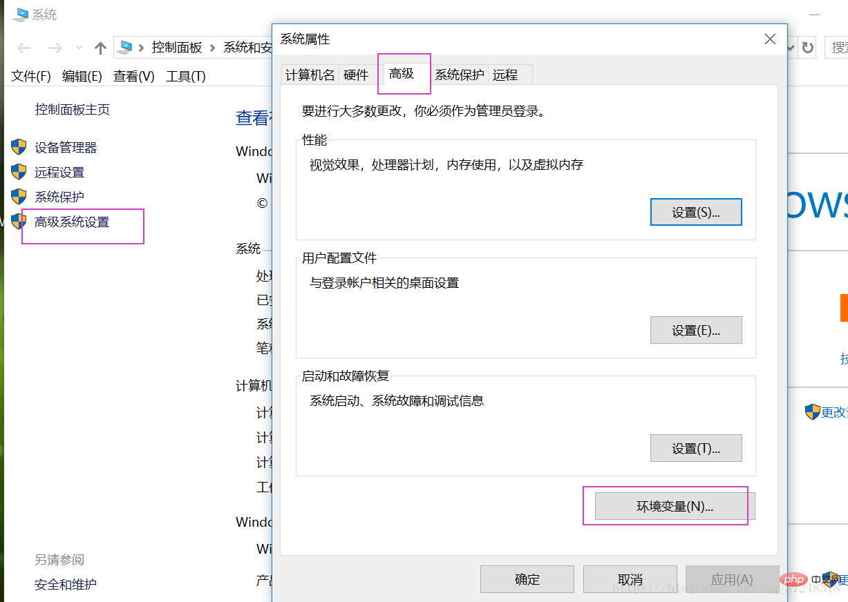 鼠标右击“我的电脑”-属性-高级系统设置-高级-环境变量,如下图:
