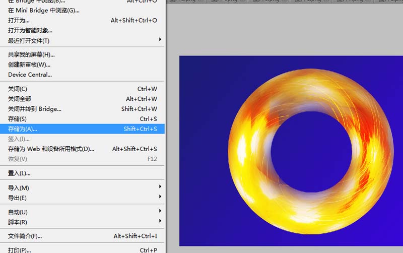 13、到此光环效果就制作完成了,执行文件-存储为命令,在弹出的对话框中输入名称,保存在一个合适的位置上即可。