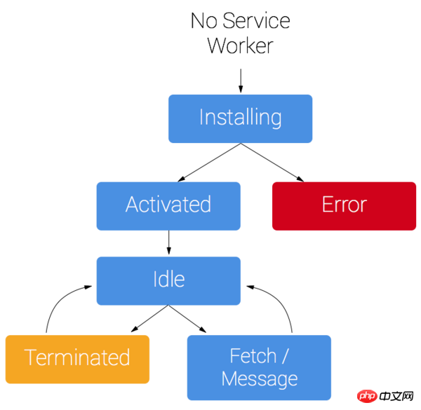service worker 采用事件监听机制, 上面的代码监听了 install 和 fetch 事件,当 server worker 安装成功后,调用此方法,然后缓存页面的资源文件, fetch 页面请求事件, server worker 拦截到用户请求,当发现请求文件命中缓存则从缓存中取得文件,返回给页面,无需经过服务器,借此达到离线的目的。