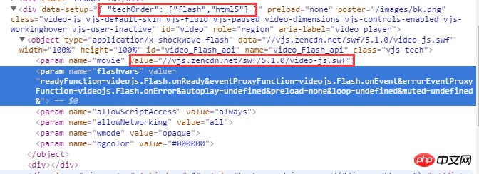data-setup='{ "techOrder": ["flash","html5"] }'登录后复制在页面元素中你会发现,video.js给我们使用的flash对象了。