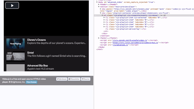 player.examplePlugin({ exampleOption: true });登录后复制插件内部可以直接调用播放器的api。 有一款playlist的插件可以研究下,如过你需要播放列表。https://github.com/brightcove/videojs-playlist 以及 http://videojs.com/advanced/ 有这样的效果: