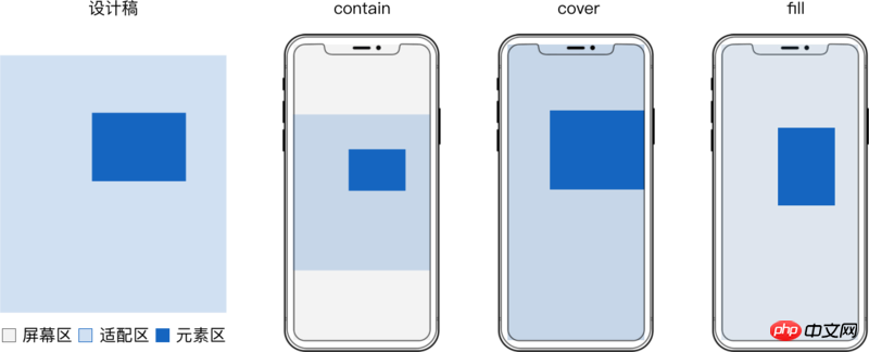 为确保各层元素同步缩放,不走样,每层的 适配区 应当等于设计稿大小。