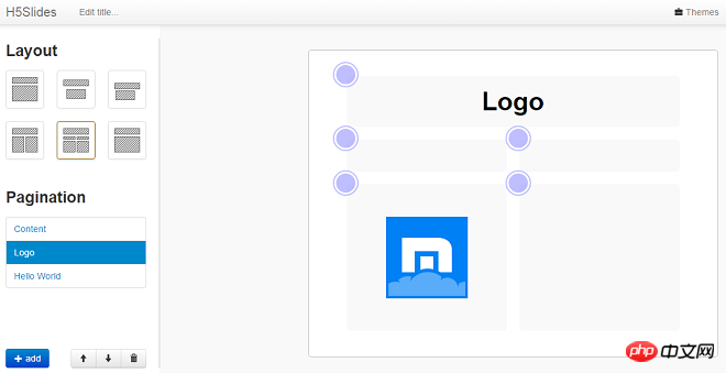 H5Slides的相关模块 模板选择 点击左侧面板的Layout,选择ppt的总体模板,这个powerpoint用法类似。