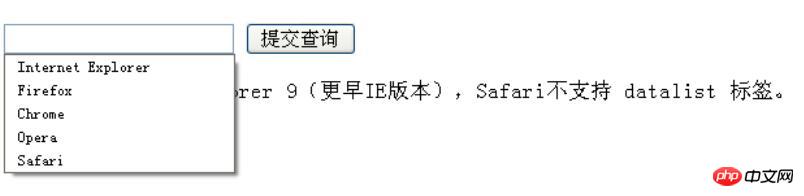 <p><strong>注意:</strong> Internet Explorer 9(更早IE版本),Safari不支持 datalist 标签。</p>