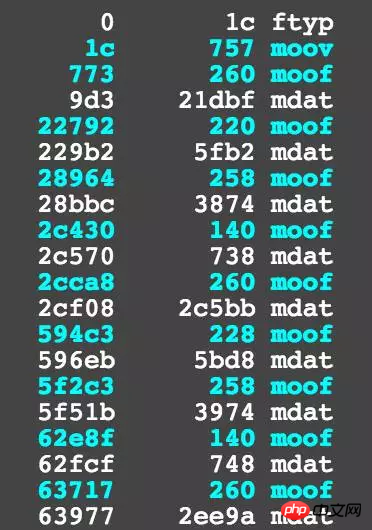 登录后复制> mp4dump fmp4.mp4 | grep "[m" | head -n 30