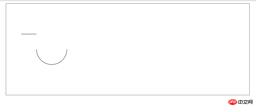 1 <!DOCTYPE html> 2 <html lang="en"> 3 <head> 4 <meta charset="UTF-8"> 5 <title>Document</title> 6 <style> 7 canvas{ 8 display: block; 9 margin: 0 auto;10 border: 1px solid #666;11 }12 </style>13 </head>14 <body>15 <canvas id="myCanvas" width="800" height="300"></canvas>16 <script>17 var myCanvas = document.getElementById("myCanvas");18 var ctx = myCanvas.getContext('2d');19 ctx.moveTo(50,100);20 ctx.lineTo(100,100);21 //使用beginPath(),多添加的两句代码22 ctx.stroke();23 ctx.beginPath();24 ctx.arc(150,150,50,0,Math.PI);25 ctx.stroke();26 </script>27 </body>28 </html>登录后复制效果图