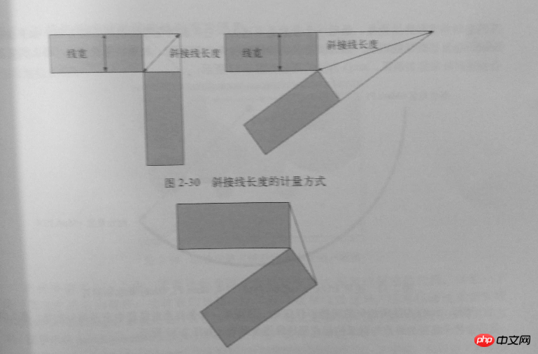 从图中我们可以看出,如果两个线段的夹角很小的话,那么斜接线的长度有可能会变的非常长,它与二分之一线宽的比值就会超出你所指定的miterLimit的属性值,