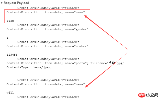 fd.append('name',"will");登录后复制有两个key为name的键值对: