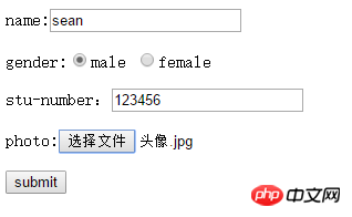 <p id="result"></p>登录后复制上述代码创建一个form,简单的填写一些信息,以及选择一张图片作为头像,设置一个p来存放返回的结果。