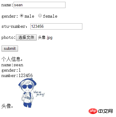 ?>登录后复制填写好信息后,点击 submit,页面中能得到以下效果,去服务器端对应的文件夹下也能发现上传的图片。