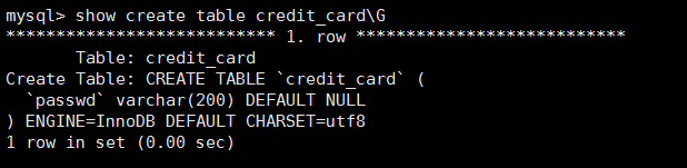 mysql> CREATE TABLE t_passwd_3(pass varchar(32)) CHARSET latin1;