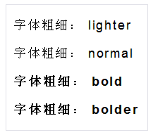 <p class="bolder">字体粗细: bolder</p>登录后复制上述代码定义了 4 种不同粗细的字体,按顺序依次变粗。运行结果如图所示: