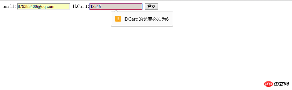 3、当有多个input不符合要求时,只会提示一个错误,一般会提示表单中相对较前的Input的