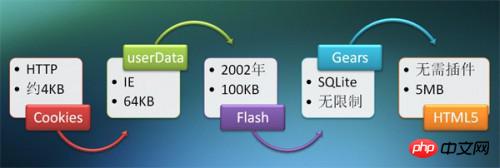 说到本地存储,这玩意真是历尽千辛万苦才走到HTML5这一步,之前的历史大概如下图所示: