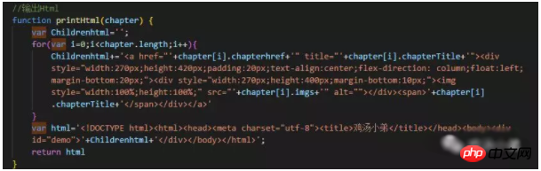 ③、取到数据,创建html,输出到页面。如下图,我用的字符串拼接,办法有点笨,还没有找到更好的办法。
