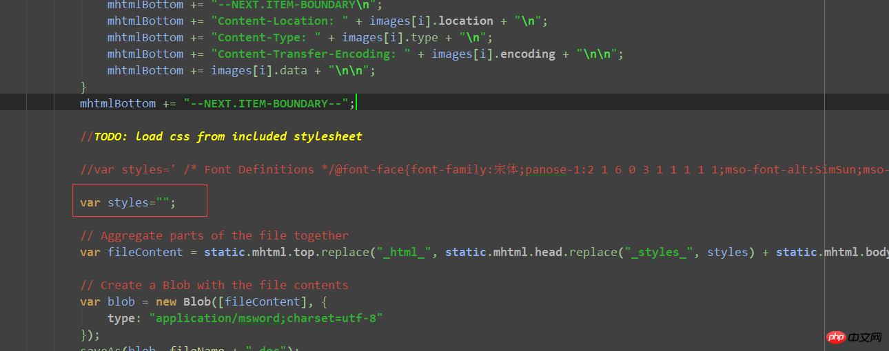 而jquery.wordexport.js插件是要配置了个style样式让我们补充样式设置的: