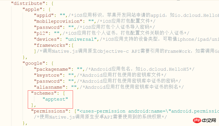 在 HBuilder 创建的移动 APP 项目下有 manifest.json 文件,在里面添加 schemes,schemes 中的值你喜欢设置成什么就什么吧。