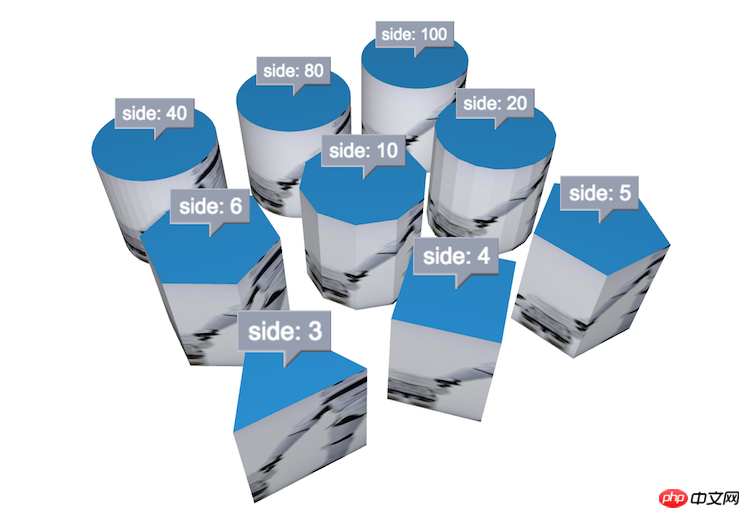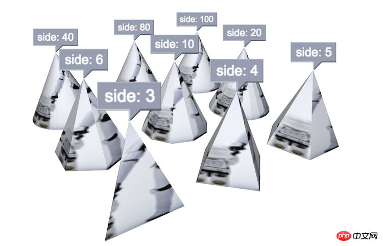 'shape3d.to.visible': false});登录后复制3. cone:锥体,可通过 shape3d.side 形成三角锥、四角锥等形状