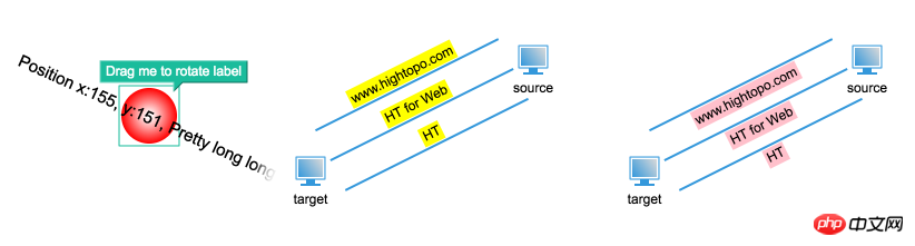 edge.setName('Hello Worldnwww.hightopo.com');登录后复制这里 n 顾名思义就是换行的意思,当然除了换行外,还可以有垂直布局等等花哨的展示形态,可参考《网络拓扑图上文本的巧妙应用》一文的介绍: