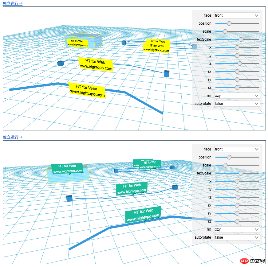 'label2.offset.y': -23});登录后复制当然也可以达到动态旋转文字的效果,拖拽下面这个红色圆球达到动态旋转文字的效果:
