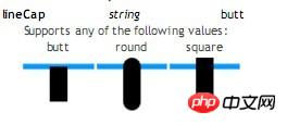 也是可以的,即lineCap属性,这个就是定义线条的端点。lineCap有3个值:butt(平,默认),round(圆),square(方),如图8