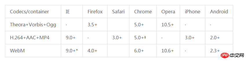 ‡Google Chrome 2011年宣布 放弃H.264, 但是“还没兑现”。 可以看出现在主流的仍然是MP4(AVC),但是为了解决“开源阵营”对AVC的摇摆不定,可以选择利用video的多源方案,在AVC的基础上额外提供对webm或ogg的支持: