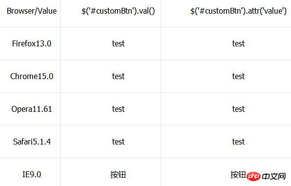 通过这两种方式$('#customBtn').val(),$('#customBtn').attr('value')在不同浏览器的获得值,如下: