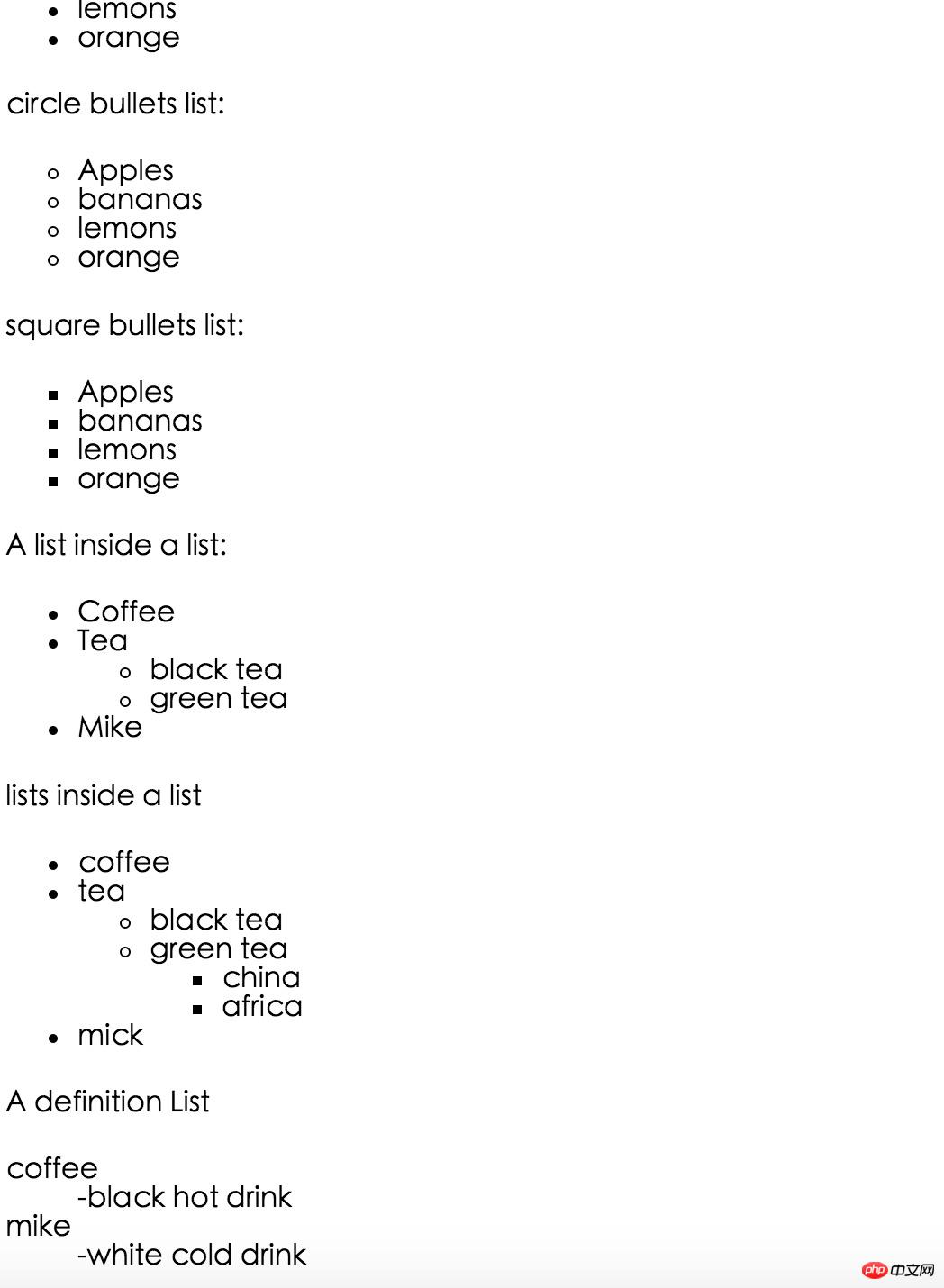 本篇文章就给大家带来HTML学习之html列表介绍,通过简单的代码示例来介绍。有一定的参考价值,有需要的朋友可以参考一下,希望对你们有所帮助。