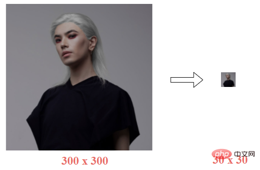 譬如,假设我们有一张 300px x 300px 的图像,我们让他转换成 30px x 30px: