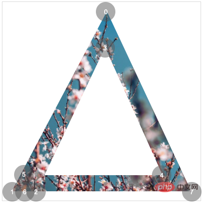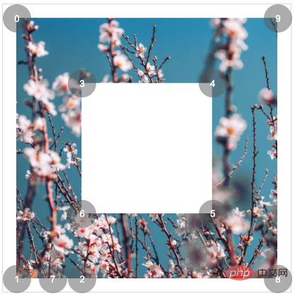 这里有必要讲解一下,使用 clip-path 切割一个环形图案,是可以做到的。假设,我们需要一个正方形环形,其点顺序如下: