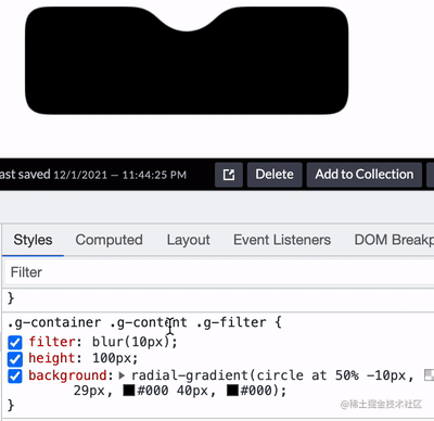 当然,重点来了,blur 与 contrast 滤镜的组合不仅能用于这种融合效果,其特殊的性质使得它们的组合可以将直角变成圆角!