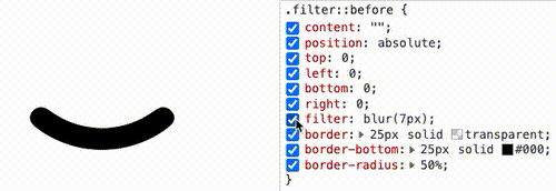 到这里,你应该知道如何通过直角圆弧得到圆角圆弧了。就是借助 filter: contrast() 配合 filter: blur() 的组合。
