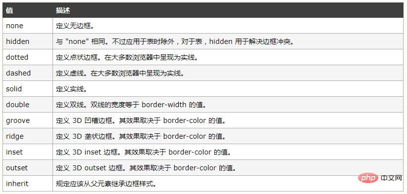 以上属性可以设置一个、二个、三个、四个属性值,当设置一个值得时候四条边框都应用该属性值,当设置两个的时候时候上下使用第一个属性值,左右使用第二个属性值,当设置三个值的时候,第一个值应用在上边框,第二个应用到左右边框,第三个属性值应用到下边框当设置了四个属性值,按着顺时针的方向一次应用。大部分情况下groove、ridge、inset、outset可以会使用双色边框,但是当border-color属性这设置成black是,两种颜色都会显示成黑色。