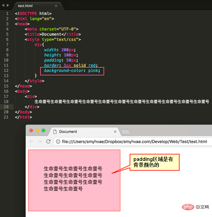 padding就是内边距。padding的区域有背景颜色,css2.1前提下,并且背景颜色一定和内容区域的相同。也就是说,background-color将填充所有border以内的区域。
