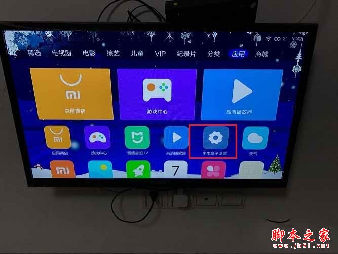 1、首先使用遥控器切换到电视的“应用”,然后选择下方的“小米盒子设置”,按遥控器中的“确认键”进入,如下图所示: