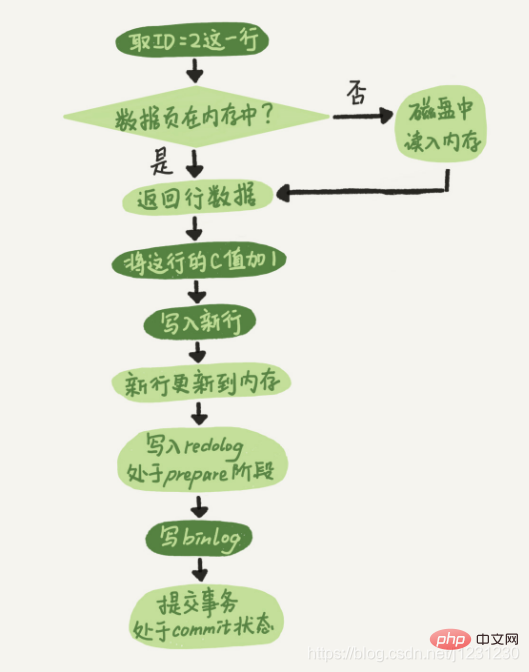 登录后复制如下图所示,浅色框表示是在 InnoDB 内部执行的,深色框表示是在执行器中执行的: