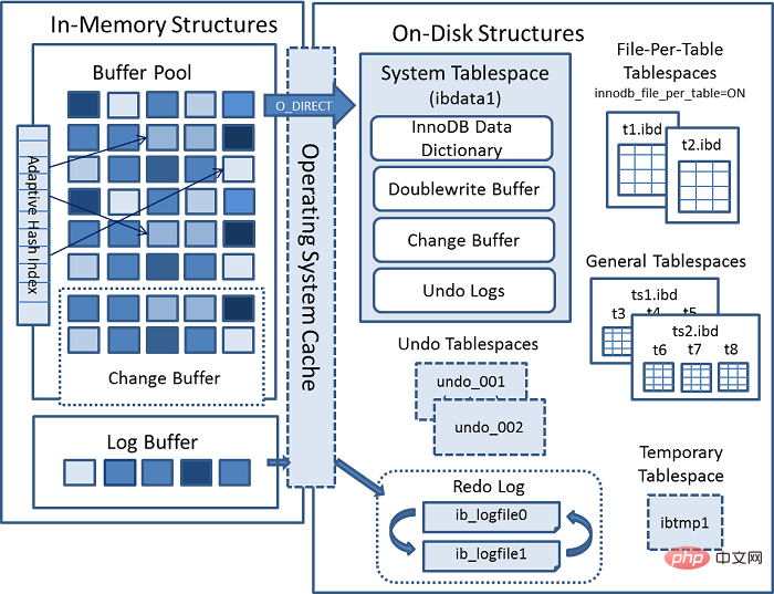 系统表空间``撤销表空间``临时表空间中,如架构图所示。