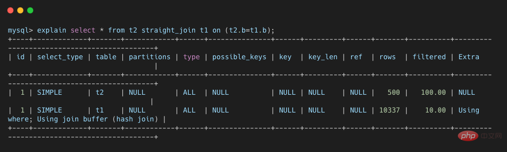 select * from t2 straight_join t1 on (t2.b=t1.b);复制代码