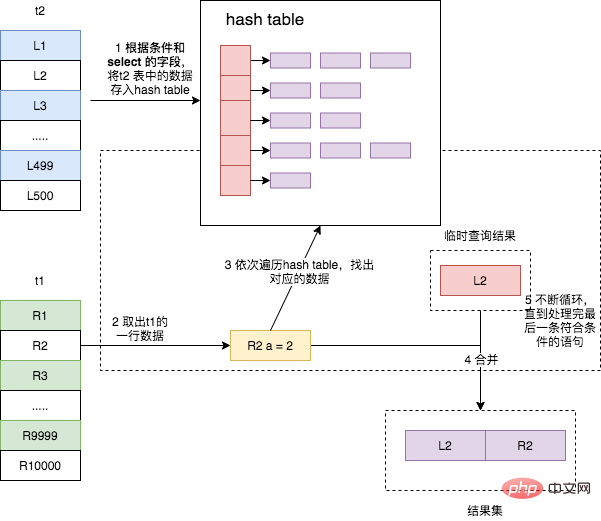 - 将驱动表 t2 中符合条件的数据取出,对其每行的 join 字段值进行 hash 操作,然后存入内存中的散列表中;