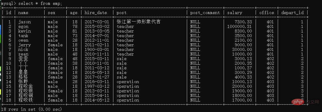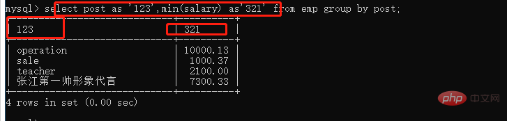 select post,count(post_comment) from emp group by post;登录后复制在统计分组内个数的时候 填写任意非空字段都可以完成计数,推荐使用能够唯一标识数据的字段 比如id字段