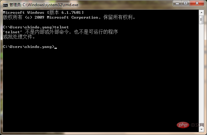 再打开cmd命令行窗口,输入telnet命令,发现可用: