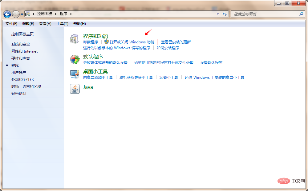 点击“程序”-“打开或关闭windows功能”