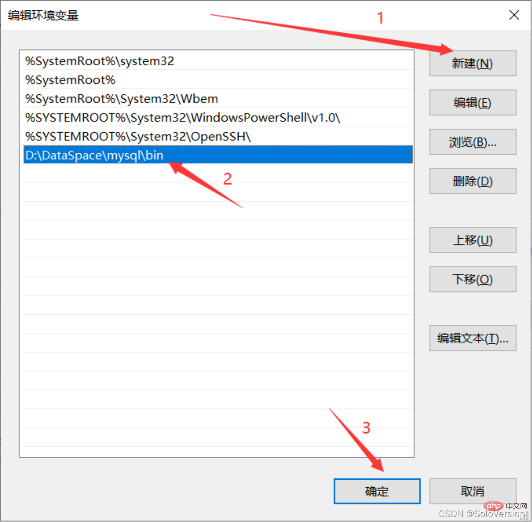 5. 点击“新建”,将MySQL的安装路径添加上去,之后点击“确定”