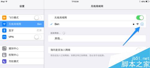 在设置列表中点击“无线局域网”一栏,如图所示