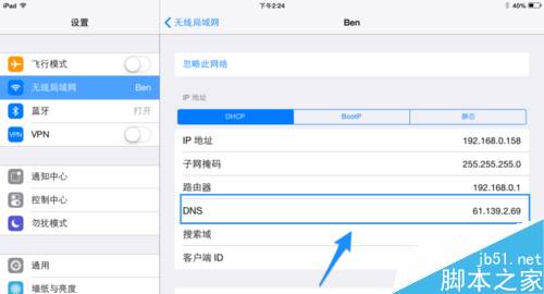 接下来请删除原来的 DNS 地址,输入新的 8.8.8.8 地址并点击“无线局域网”按钮返回,如图所示