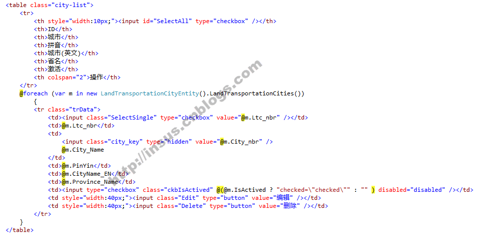 在ASP.NET MVC视图html代码如下,普通的表格table,普通的html标签: