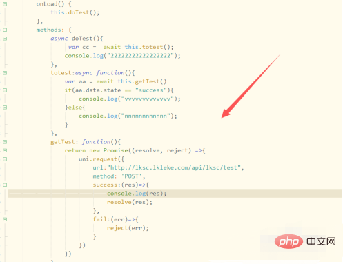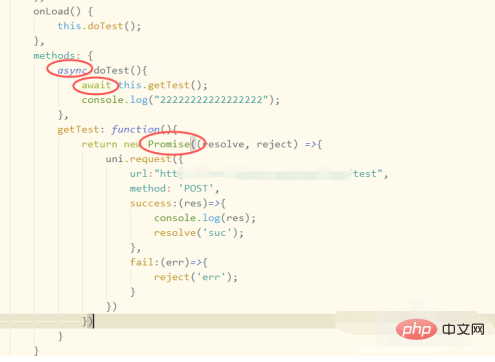 4、然后我们用async搭配await,接着在调用方法中返回Promise,如下图所示